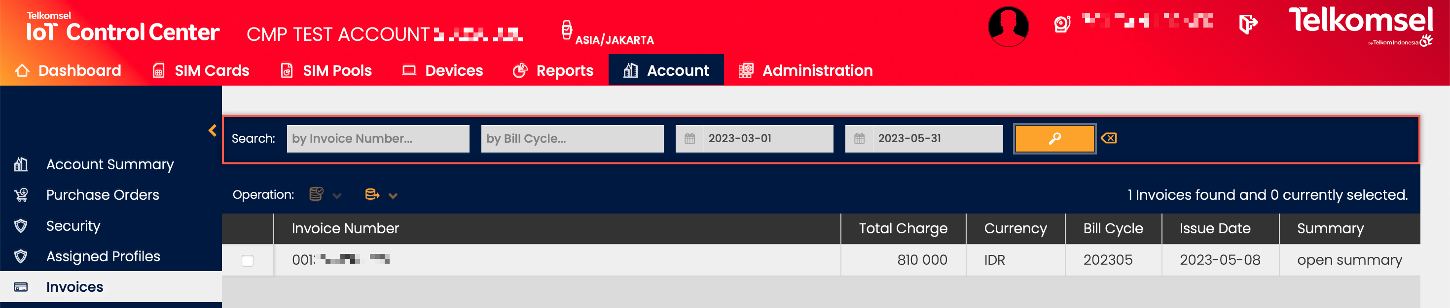 Service Provider Users can access a list of all Account invoices in the Invoices section of the Administration tab. See the Invoices section of the user manual for more information.