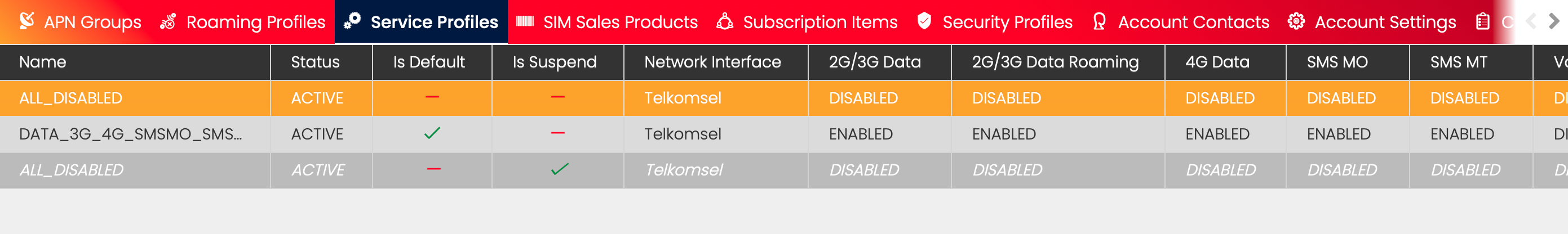 Service Profiles define the set of services that a SIM is authorized to use when it connects to a network. Using a Service Profile with the right level of services is an important step toward preventing an Account from incurring unnecessary charges.