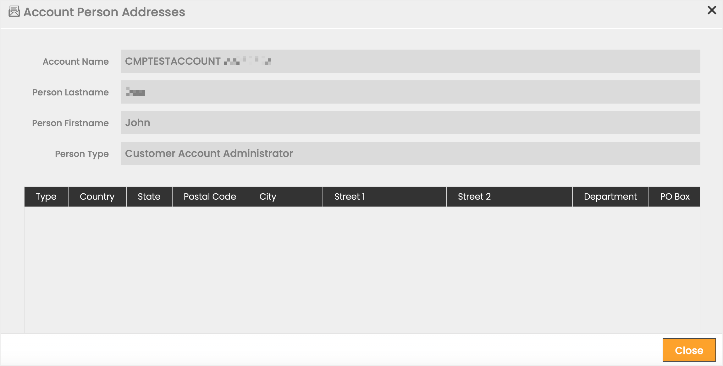 icon in the Addresses column, Users can view the addresses specified for the currently selected Account Contact.