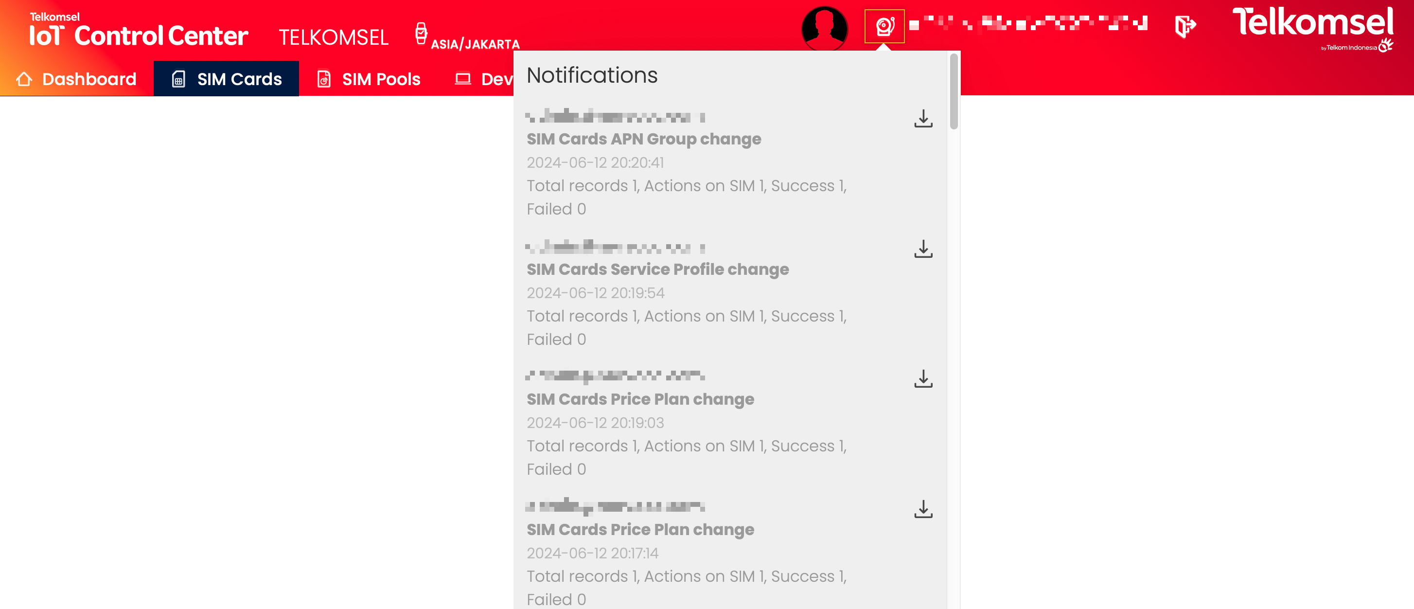 If a failure happens, the failure reason is presented if possible (e.g. SIM Card Batch Update - Invalid File).
