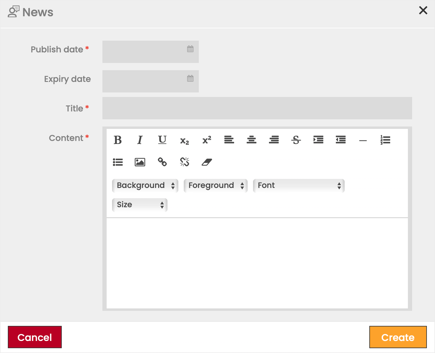 Within the Administration module, Users can create News postings that will be visible to all Users of an Account. The News feature provides a method for distributing messages to a broad audience, which can be more efficient and preferable to using a separate email application.