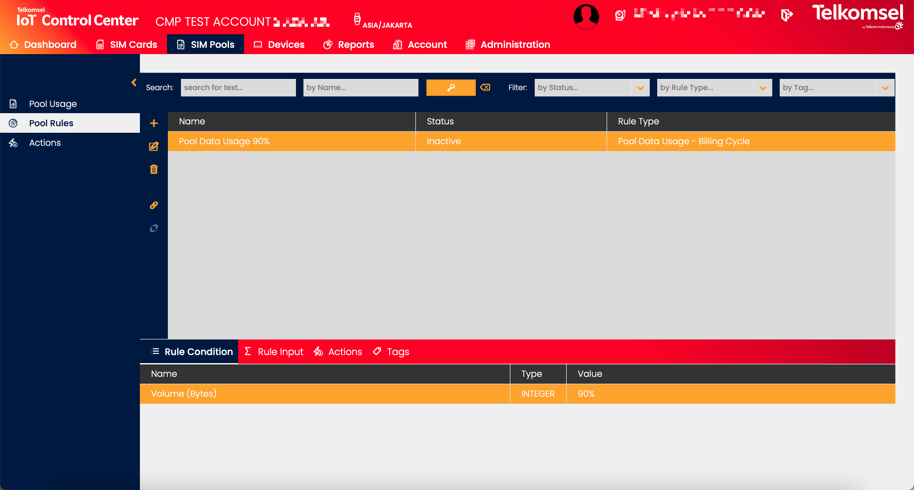 Rules define events which - when the event condition is fulfilled - automatically trigger one or many Actions. The event conditions in Pool Rules are related to SIM Pools.
